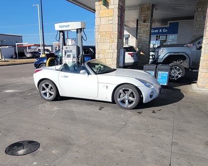 But 5 days later and I was back in the Solstice with the top down. The temp was only 54 degrees, but the sky was crystal blue and what the heck. I had been couped up too long. Beside the Sol need gas.